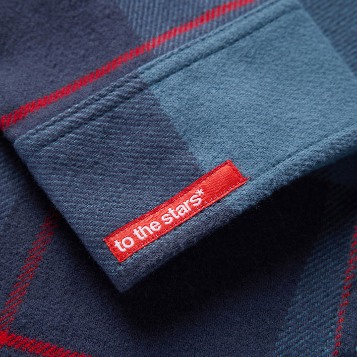 The TTS* x Brixton Flannel is a classic, two-pocket flannel which looks and feels like a favorite shirt from day one. Designed with signature vintage-inspired plaids and a proprietary, anti-scratch wool tri-blend. Ideal for layering over a tee for added warmth or wearing on its own. It features a red embroidered asterisk on the collar and a red woven To The Stars* label on the cuff.