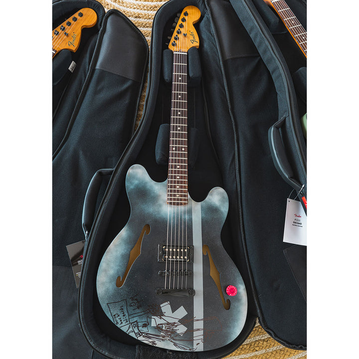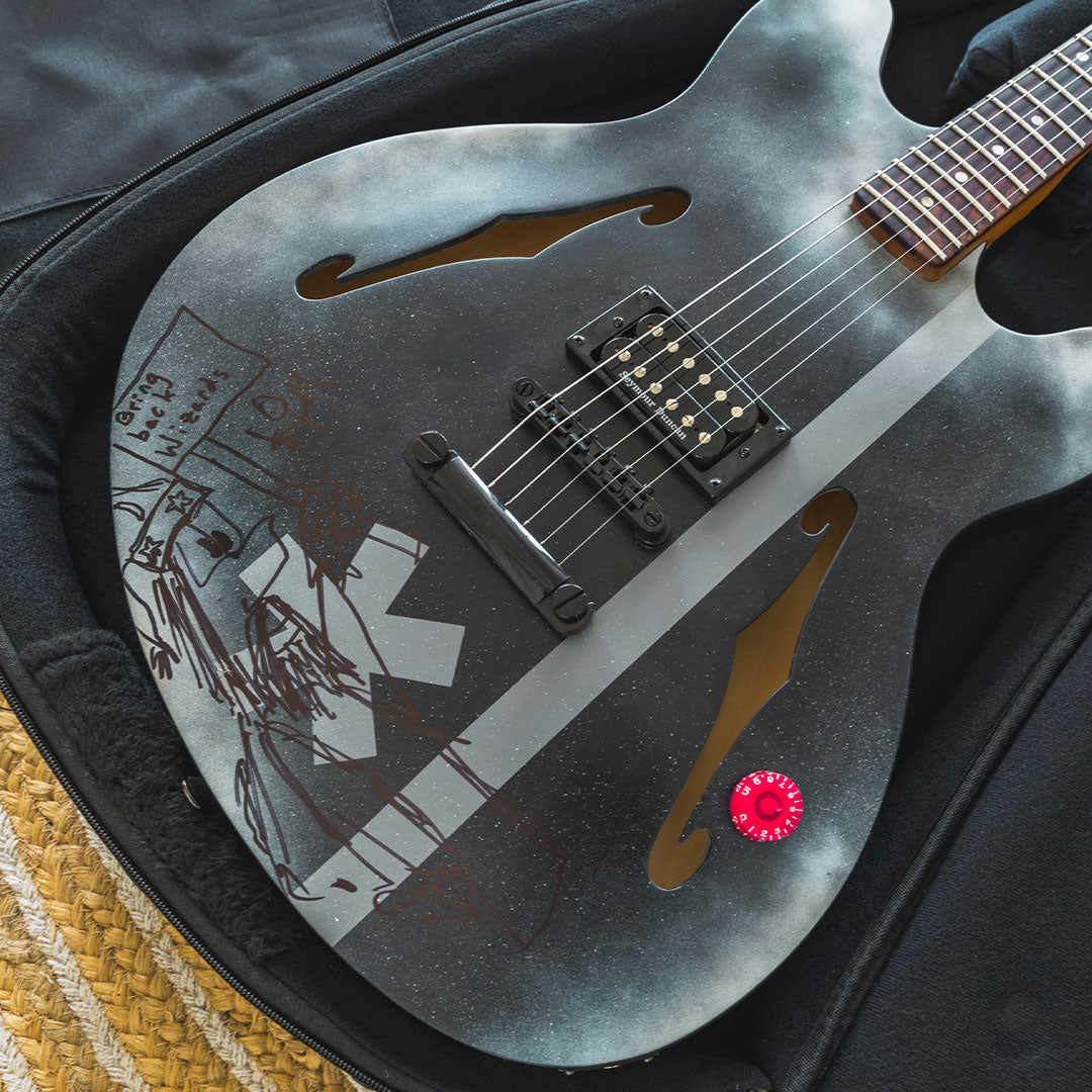 Every guitar features a signature red acrylic “To The Stars” knob, a hand-sanded satin neck back, and—most notably—an individual one-of-one hand-drawn cartoon and signature by Tom DeLonge, illustrated directly on the instrument. No two guitars share the same artwork.