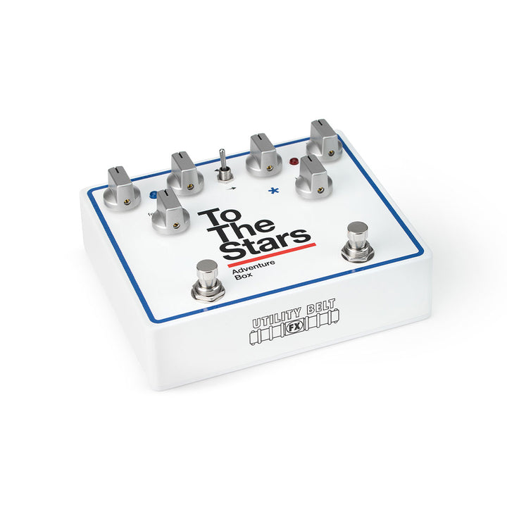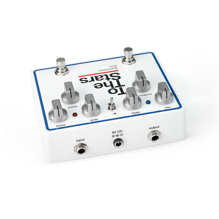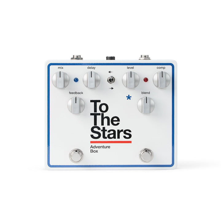 From the imagination of Tom DeLonge and To The Stars* comes the limited edition Adventure Box. Designed in collaboration with Tom's recording engineer, Aaron Rubin, and crafted by Utility Belt FX — a small-batch, gear-head driven boutique effects maker trusted for authentic tone replicas and high-end flexibility. This 2-in-1 guitar pedal contains an analog compressor and delay to put the tones you've been listening to for 20 years right at your feet. Use either channel independently or together!